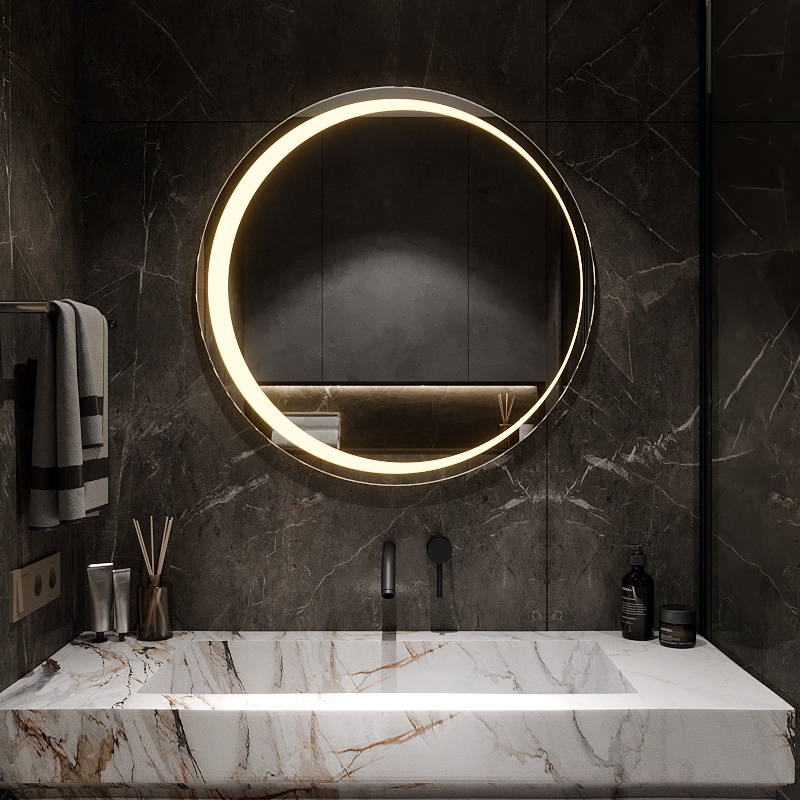 O oglindă elegantă cu lumină delicată, care adaugă confort și un stil modern interiorului.