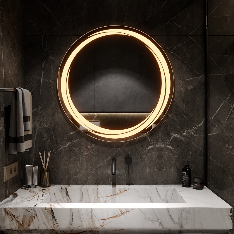 Inelul luminos evidențiază forma cercului și aduce un caracter ordonat, contemporan. Lumina este difuză și plăcută — confortabilă pentru utilizarea zilnică.