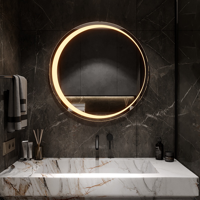 O oglindă elegantă cu lumină delicată, care adaugă confort și un stil modern interiorului.