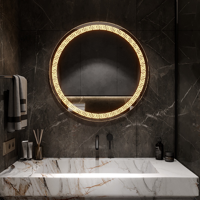 Un model accent cu lumină uniformă și plăcută. Motivul „meandru” sablat oferă profunzime și evidențiază stilul modern al interiorului.