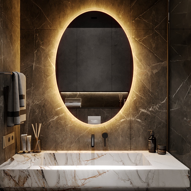Lumina perimetrală formează un „halou” curat și ușurează vizual forma.